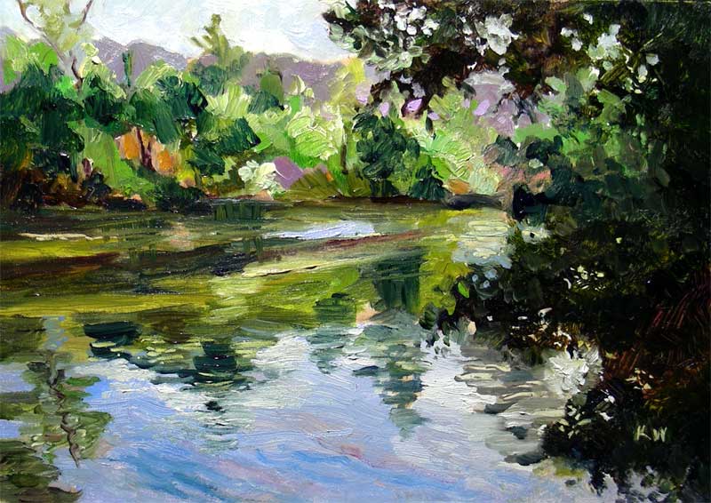 On Descanso Pond - lake oil painting Descanso Gardens, La Canada Flintridge Art