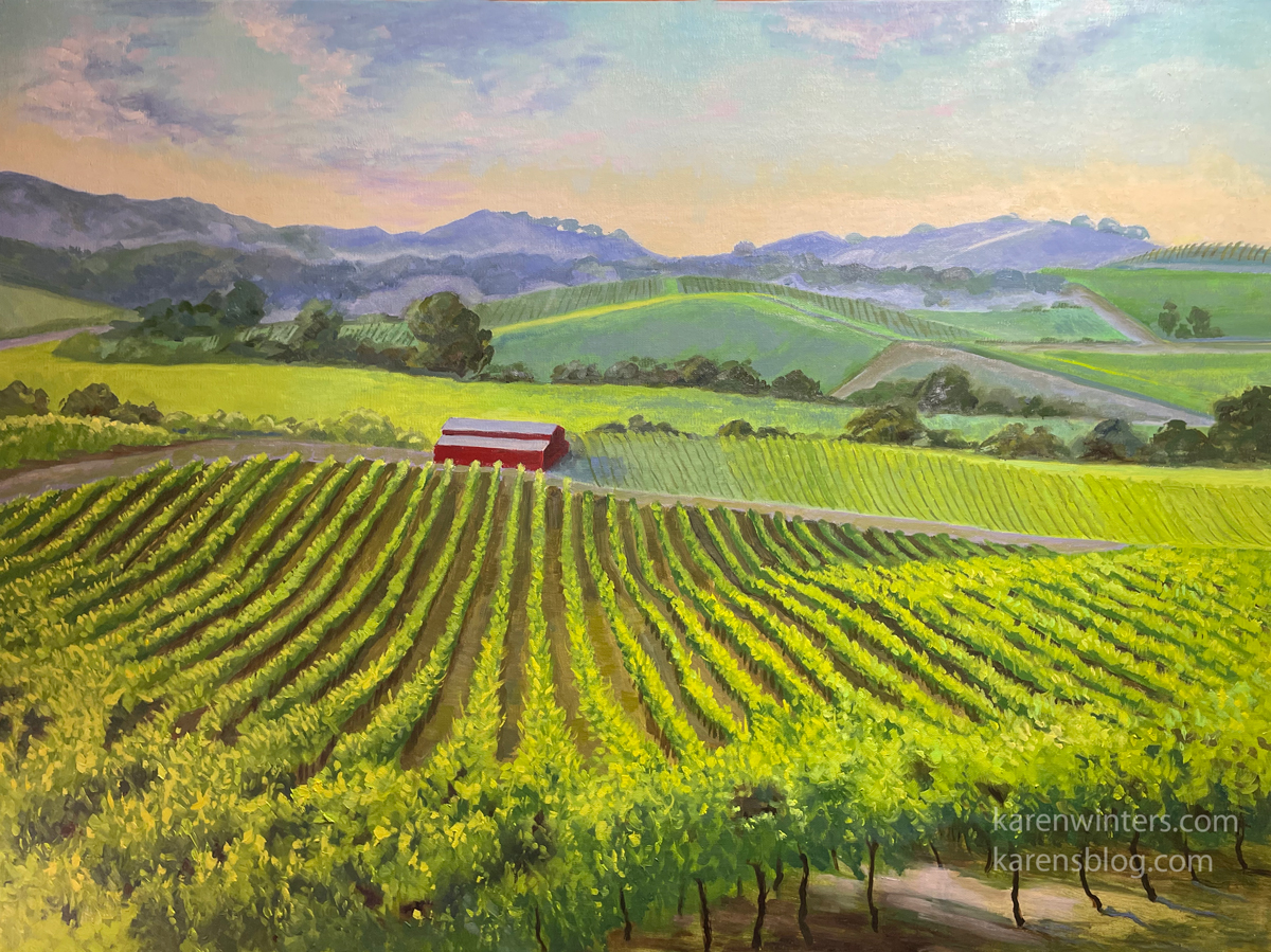![]() Vineyard Sunrise Peachy Canyon, Paso Robles 24 x 30 in, oil |